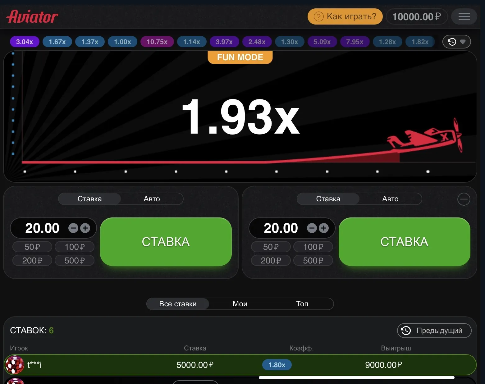 - Тактика Мартингейла. Генератор случайных чисел Авиатор выдает множитель х2 гораздо чаще, чем ГСЧ игровых аппаратов. В среднем этого коэффициента кукурузник достигает каждые 10-20 минут. Поэтому посетитель казино может каждую проигрышную ставку в следующем раунде увеличивать в два раза, на короткой дистанции окупать затраты и выходить в плюс.